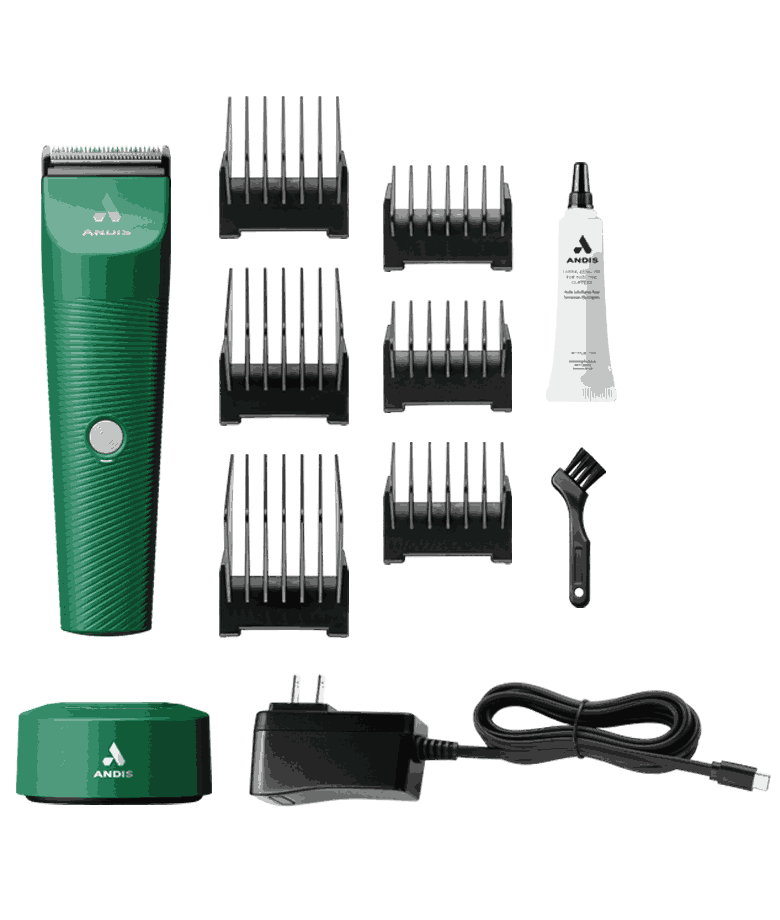 Klippemaskin med utskiftbart justerbart blad, størrelse 9 -40. Ladbart litium batteri gir opptil 90 minutters klippetid. 60 minutters lading via USB / adapter. Lett i vekt, kun 278 gram. High speed 5500 spm. Levers med lader, blad, fem dybdekammer, olje og børste.